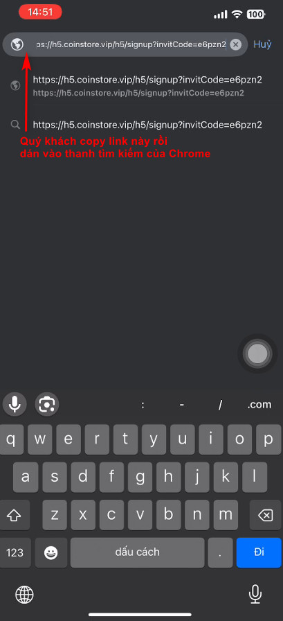 Bước 1: Copy link bên dưới rồi dán vào trình duyệt Chrome trên điện thoại
