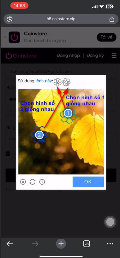 Bước 5: Điền thông tin đăng nhập vào tài khoản Coinstore