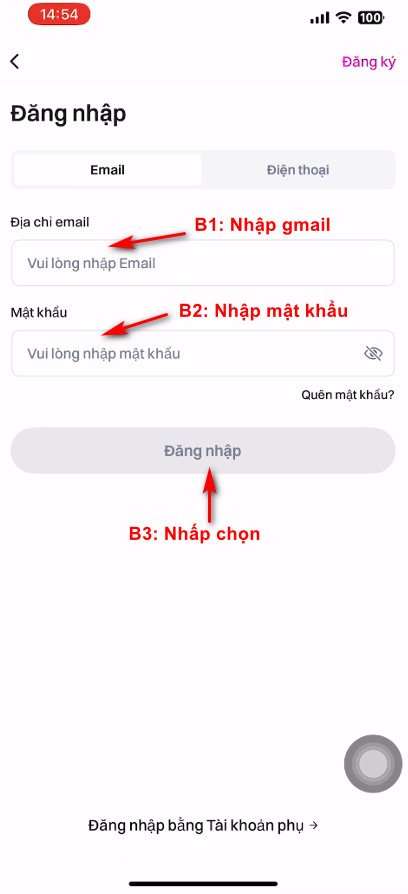 _ Quý khách nhập địa chỉ Gmail đang sử dụng, Mật khẩu và Nhấp chọn nút Đăng ký
