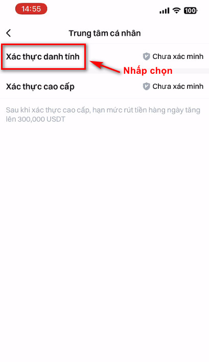 _ Quý khách nhấp chọn vào Xác thực danh tính