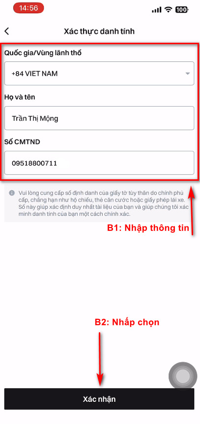 Bước 7: Nhập thông tin theo yêu cầu và nhấp chọn nút Xác nhận