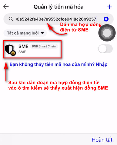 _ Trên thanh tìm kiếm quý khách copy đoạn mã hợp đồng điện tử của SME là: 0x26021780e5242fe40e7e9552cfce9418c26b9257