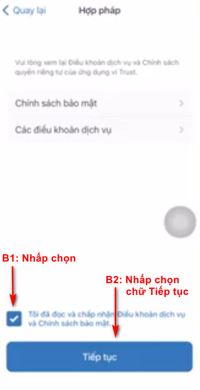 Bước 3: Xem chính sách bảo mật và các điều khoản dịch vụ. Sau đó thực hiện thao tác sau: