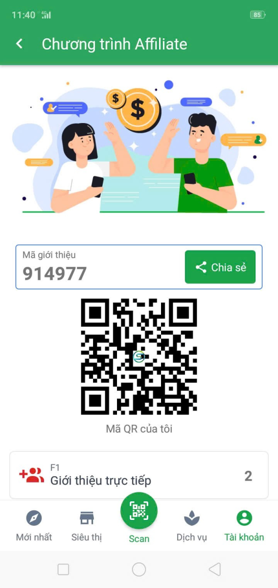 Bước 3: Quý khách thấy được mã giới thiệu của mình trên hệ thống SME Mart